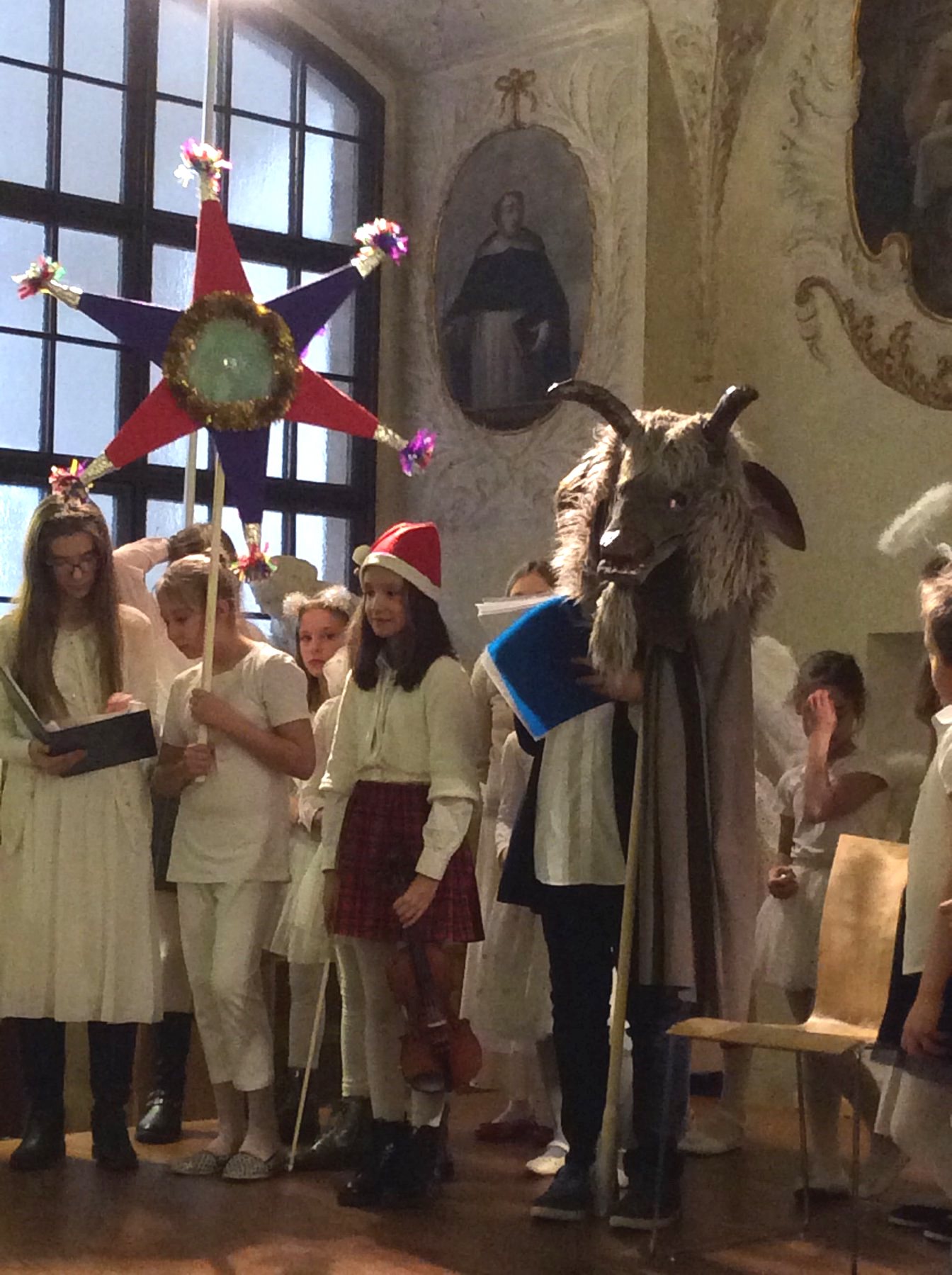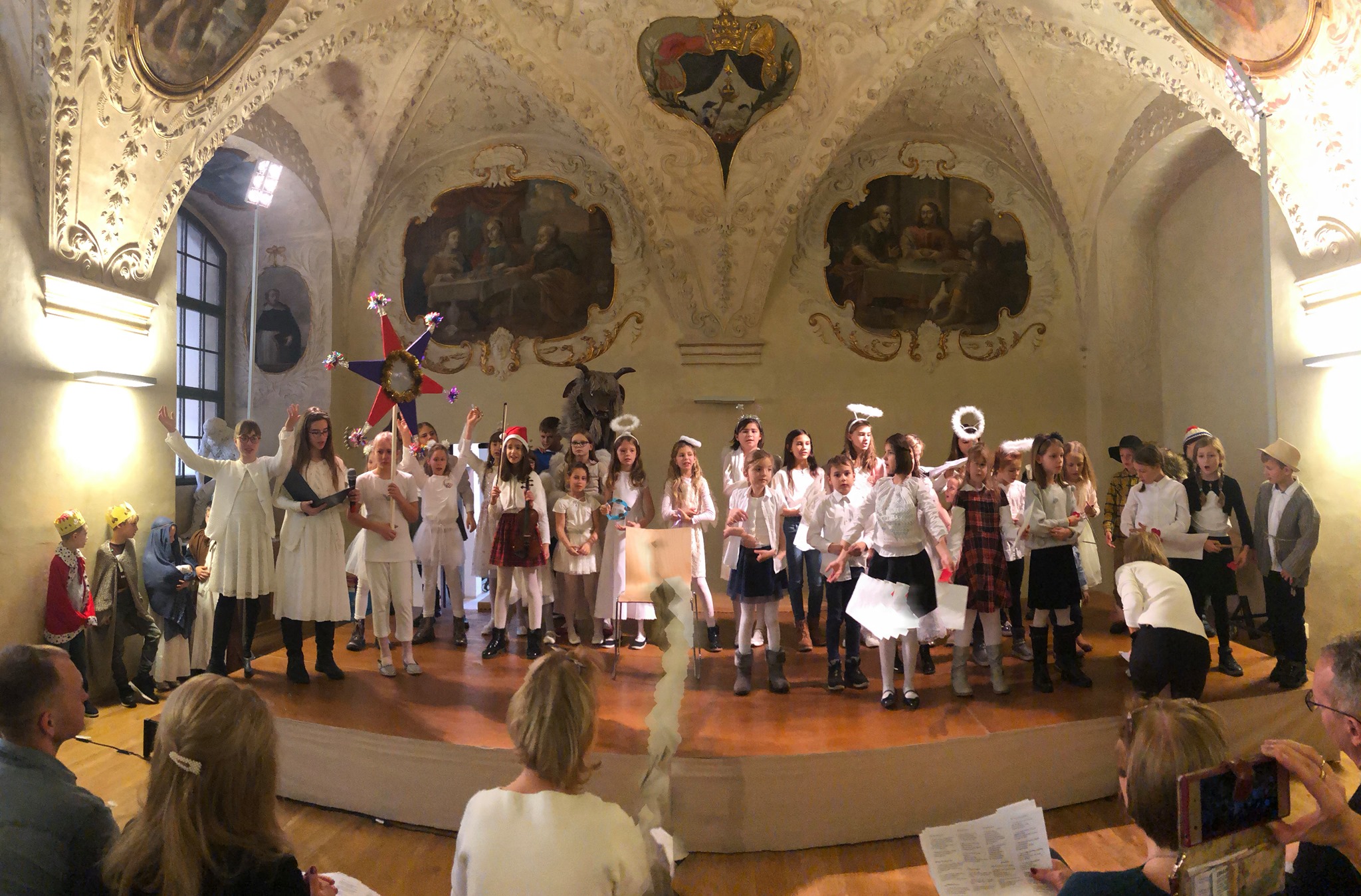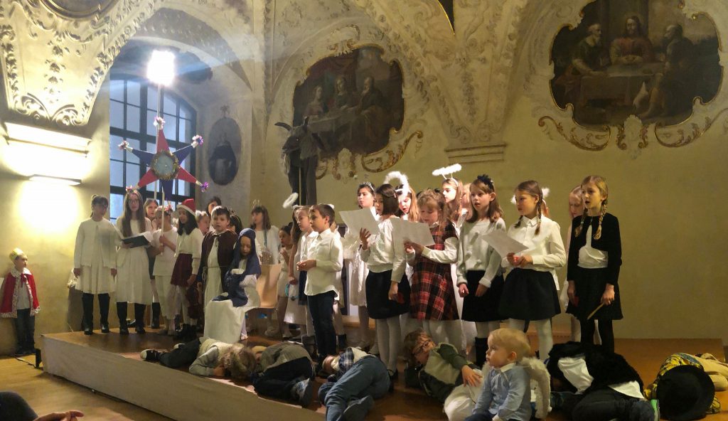 Dnia 14 grudnia 2019 r., jak co roku, nasza szkoła przygotowała jasełka bożonarodzeniowe. Zostały przygotowane przez uczniów szkoły podstawowej i gimnazjum. pod kierunkiem pani Marii Bornus. To spotkanie było wyjątkowe, ponieważ pierwszy raz odbyło się w pięknym refektarzu barokowym w klasztorze oo. dominikanów. Nasza klasa odpowiedzialna była w tym roku za przygotowanie sali na uroczystość. O godzinie 12.00 wszystkie klasy wraz z wychowawcami i rodzicami przybyły do klasztoru. Przedstawienie rozpoczęło się wystąpieniem pani Agaty Vlasakovej, która zaprosiła wszystkich do obejrzenia spektaklu oraz do wspólnego kolędowania. Na początku przemówił również pan Konsul, który złożył wszystkim życzenia świąteczne. Zebrani goście oglądali jasełka z dużym zainteresowaniem. Oprócz tradycyjnych kolęd, śpiewaliśmy trzy nowe świąteczne piosenki, które bardzo się wszystkim podobały. Jak zawsze było wzruszająco i zgodnie z tradycją. Cała publiczność wynagrodziła nas gromkimi brawami. Po jasełkach przemówił ojciec Błażej. Potem wszyscy składali sobie życzenia łamiąc się opłatkiem. Na końcu był pyszny poczęstunek, przygotowany przez naszych rodziców. Uważamy, że ta uroczystość była bardzo udana. Jasełka będą zapamiętane przez wszystkich, a na kolejne czekamy z niecierpliwością.